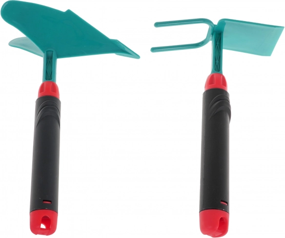 Gereedschap zonder scherpe randen, met ergonomische grepen en een laag gewicht. Ideaal voor de eerste tuinierpogingen en veilig buitenspelen.