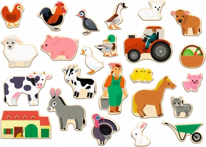 - 24 houten magneten met boerderijthema