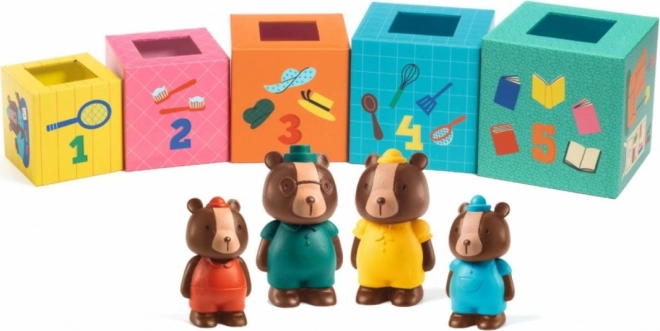 DJECO stapelkubussen met een berenfamilie-thema bieden veel plezier en educatieve mogelijkheden. Kinderen kunnen een toren bouwen, de blokken in elkaar schuiven of ze gebruiken om kleuren en dieren te leren herkennen.
