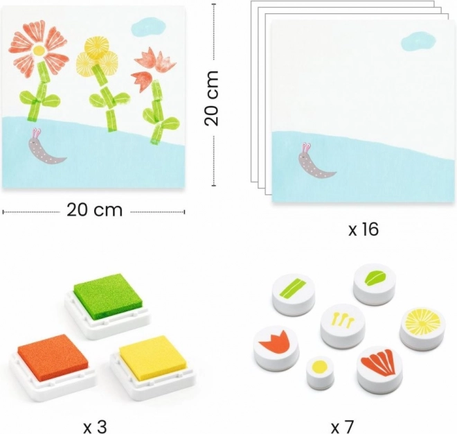 Met de DJECO Bloemen stempelset kunnen kinderen stempelen volgens de handleiding of hun eigen fantasie. Elke set bevat verschillende natuur- en bloemmotieven die tot creativiteit inspireren.