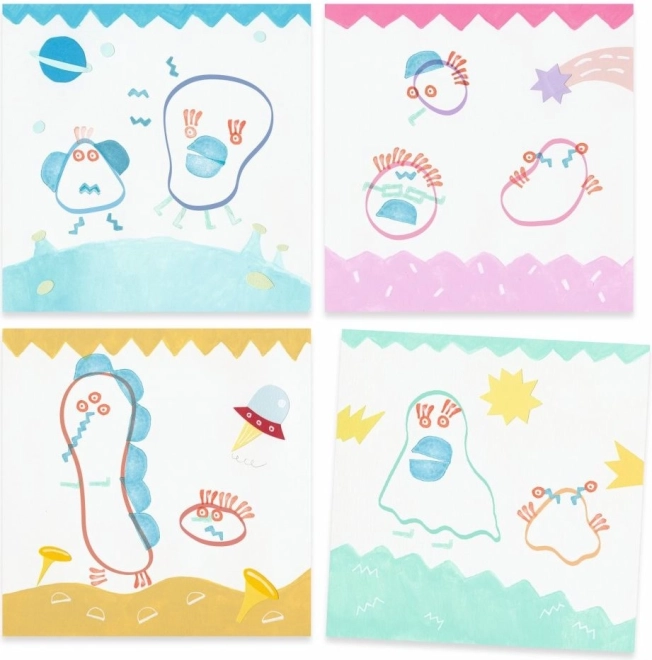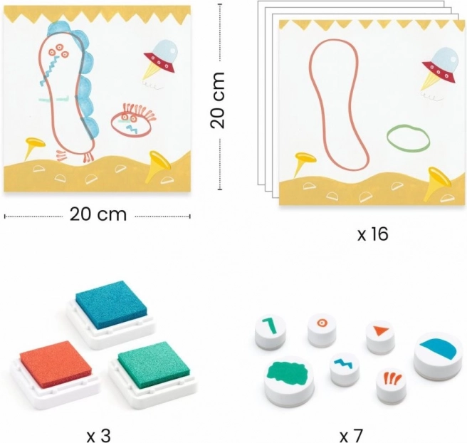 Stempelset voor kinderen met monsters thema zorgt voor plezier en ondersteunt de creativiteit van jonge kunstenaars. Kinderen kunnen experimenteren met verschillende combinaties en schattige afbeeldingen maken.