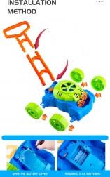 In de maaier werkt een kleine ventilator die lucht blaast naar 8 roterende ringen. Deze worden afwisselend in de vloeistof gedoopt en sturen de bubbels door het mondstuk – zo ontstaat er heel veel bubbels zonder onderbreking. De begeleidende bubbelgeluiden en sprookjesmelodie versterken het speelplezier.