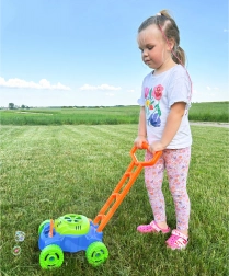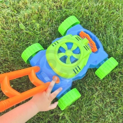 De maaier imiteert het ratelen van een echte machine, voegt bubbelgeluiden toe en speelt een sprookjesmelodie af voor maximaal plezier.
