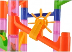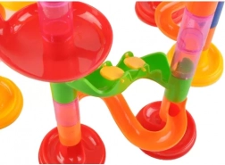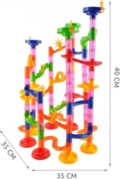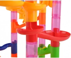 Deze kleurrijke knikkerbaan stelt kinderen in staat gevarieerde routes met verschillende moeilijkheidsgraden te bouwen. Onderdeel van de set zijn windmolentjes, loops en barrières die door de knikkers tijdens het rijden worden geactiveerd. De onderdelen verbinden eenvoudig en intuïtief, zodat je snel configuraties kunt wijzigen en nieuwe ideeën kunt testen.