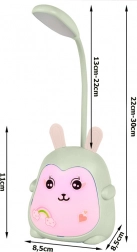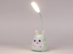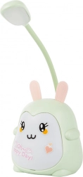 Deze lieve nacht- en bureaulamp combineert een speels design met praktische functies. De flexibele arm maakt het makkelijk om het licht te richten op een boek of schrift, terwijl de behuizing een knusse sfeer creëert voor rustig inslapen.