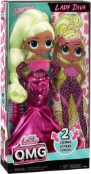 Ontdek de iconische pop L.O.L. Surprise! O.M.G. Lady Diva met lang blond haar, glam outfits en bewegende gewrichten voor perfecte poses. In de verpakking vind je veel modieuze accessoires, 2 stijlen om te kleden en een standaard om neer te zetten – ideaal voor creatieve modespeeltjes en verzamelaars.