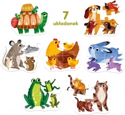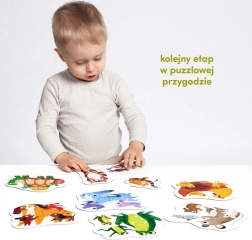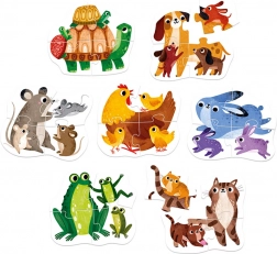 Hé kleintjes, het is tijd voor jullie eerste meerstukspuzzels! Vriendelijke dieren en hun ouders nodigen je uit om te gaan puzzelen. Mijn eerste puzzel voor peuters is een educatieve set met 4 kleurrijke puzzels, elk bestaand uit 4 grote stukjes.