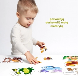 Deze kleurrijke puzzel vol warmte en humor bestaat uit 4 stukjes. Het is een geweldige keuze voor peuters die klaar zijn voor de volgende stap in hun puzzelavontuur. Het zoeken en verbinden van puzzelstukjes is een leuk spel dat het scherpe oog en de handvaardigheid traint en speels het leren van nieuwe woorden stimuleert.
