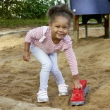 De wagon met kiepbak biedt ruimte voor zand of kleine speeltjes en maakt snel en leuk lossen mogelijk.