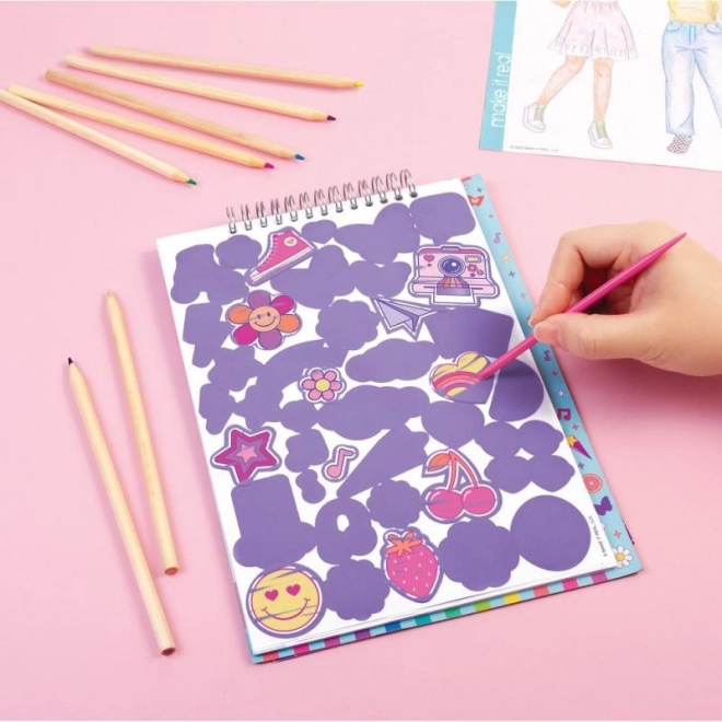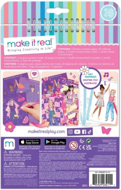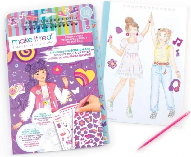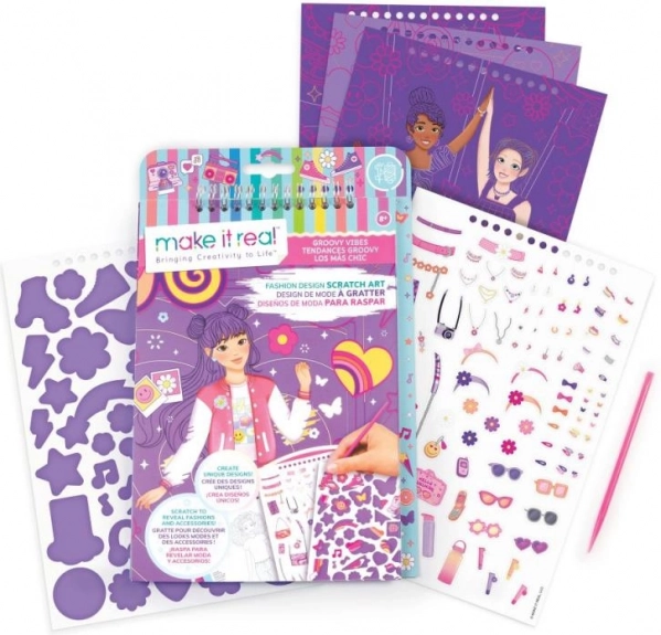 Wie houdt er niet van kraskunst en mode? We hebben beide gecombineerd! Kras om de onderliggende print van modieuze ontwerpen te onthullen. Traditionele kleurplaten met figuren en stickers maken het modieuze ontwerp compleet.