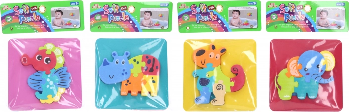 Ontdek het plezier met een zachte schuimpuzzel in het formaat 14x14 cm met schattige dierenvormen.