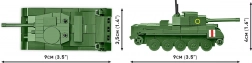Dit mini‑model uit de COBI Historical Collection is uitgevoerd in 1:72 schaal, en meet na montage ongeveer 9 cm in lengte, met getrouwe weergave van de belangrijkste kenmerken van het origineel. Dankzij de draaibare koepel en de wielen is het zowel geschikt om neer te zetten als om mee te spelen. Bedrukte Britse emblemen geven het model een authentieke uitstraling.