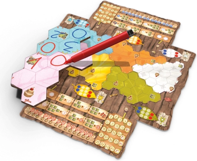 - Dankzij uitwisbare stiften en speciale borden gaat het spel lang mee en wordt het aantal partijen niet beperkt door schriftjes, zoals bij andere roll & write-spellen.