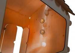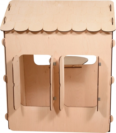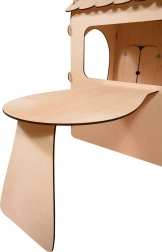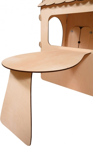 Het zijtafeltje biedt ruimte om te tekenen, spelen of andere activiteiten te doen. Het verhoogt de interactiviteit van het hele huisje.
