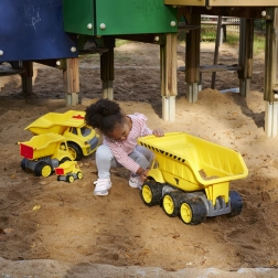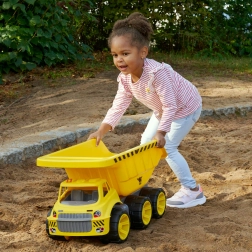 De BIG Power Worker Mega kiepwagen is ontworpen voor kleine handjes en grote ideeën. Het felgele design met moderne prints ziet eruit als een echte bouwvoertuig, terwijl de bak met een inhoud van 13 liter zand, water en speelgoed aankan. Met een lengte van 65 cm is hij 30% langer dan het kleinere model uit de BIG Power Worker Maxi serie en biedt nog meer speelruimte.