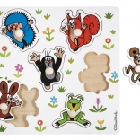 Deze houten inlegpuzzel met MOL-thema biedt kinderen een leuke en leerzame activiteit. Elk figuurtje heeft een eigen knopje, waardoor de stukjes gemakkelijk kunnen worden opgetild, verplaatst en in de contouren gelegd. Zo trainen kinderen spelenderwijs hun nauwkeurigheid en geduld.