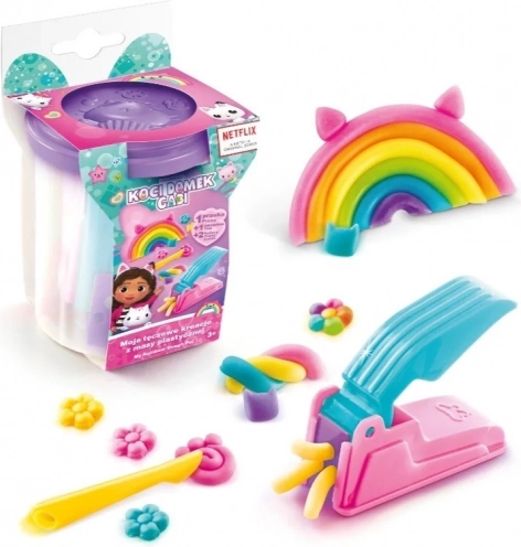 Stap binnen in de betoverende wereld van Gabby en haar kattige vrienden met deze creatieve set voor kleine kunstenaars. De klei-set “Mijn regenboogcreaties” biedt plezierig knutselen, prikkelt de fantasie en helpt te ontspannen en tot rust te komen na een drukke dag. Dankzij de hoogwaardige afwerking en de levendige kleuren is hij ideaal voor kinderen die van sprookjes en creatief spel houden.