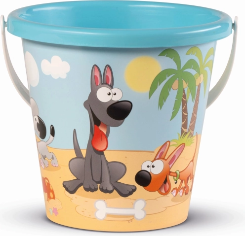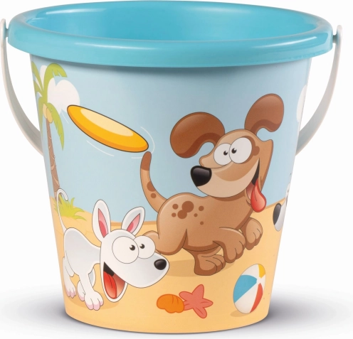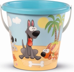 Middelgrote emmer voor in het zand met een speelse hond als motief, gemaakt in Italië van hoogwaardige kunststoffen. Perfect voor kleine bouwers vanaf 10 maanden. Het stevige en lichte ontwerp zorgt voor gemakkelijk dragen.