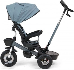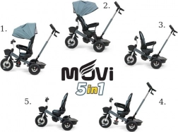 De MOVI-driewieler is stabiel en veilig, heeft een modern design en een comfortabel, gevormd zitje dat 360 graden draaibaar is, zodat je zowel vooruit als achteruit kunt rijden. De fiets is uitgerust met een valbeugel, een driepuntsveiligheidsgordel en voetsteunen, terwijl de met lucht gevulde banden zorgen voor een stille en comfortabele rit. Na het verwijderen van de duwstang, de veiligheidsbeugel, de kap en de zittinghoes kan de MOVI als driewieler worden gebruikt. Dankzij de vrijloopfunctie kan het kind vrij trappen, terwijl de ouder via de stuurduwstang de snelheid kan corrigeren.