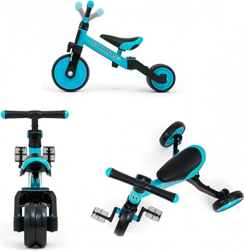 De 3-in-1 OPTIMUS loopfiets groeit mee met je kind – van de eerste stapjes in de stabiele driewielmodus, via traptraining met pedalen, tot een snelle en lichte klassieke loopfiets. Dankzij hoogwaardige materialen en een doordacht ontwerp ondersteunt hij de ontwikkeling van motoriek, beenspieren en coördinatie.