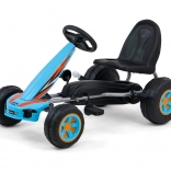 De Viper-kart is een stabiel vierwielig voertuig met een duurzame stalen frameconstructie, extra verstevigd voor meer stevigheid. Dankzij de grote schuimbanden met rubberen hoezen kan hij ook over oneffen terrein en biedt hij een soepele en stille rit. De realistische look en het sportieve driespaaks stuur benadrukken het aantrekkelijke design voor kleine racers.