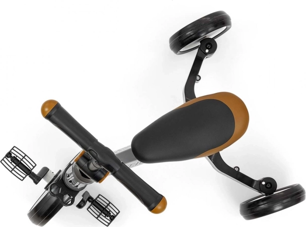 Hoogwaardige materialen en slim uitgewerkte details bieden comfort en duurzaamheid: stalen frame, comfortabel ergonomisch zadel met hoogteverstelling, schuimbanden voor stille ritten en een begrenzer van de stuurhoek tegen omvallen. De compacte constructie maakt transport en opslag eenvoudig.