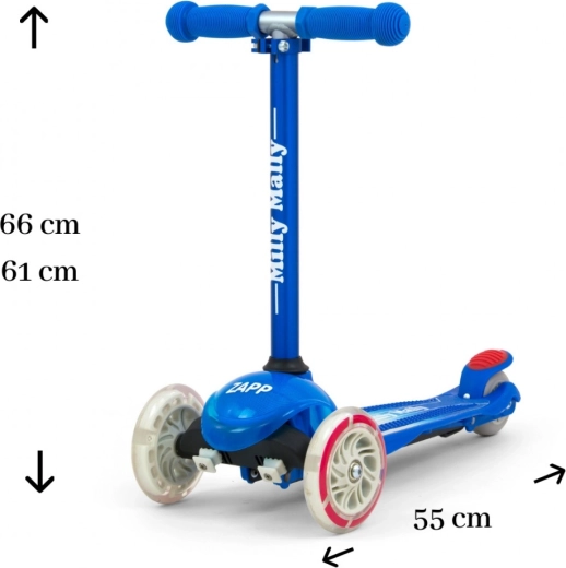 De kinderstep Zapp Milly Mally is ontworpen met het oog op de behoeften van kinderen. Dankzij het aluminium, uitneembare stuur is hij uitzonderlijk licht. Antisliphandvatten met beschermkappen beschermen de handen van de kleine reiziger, en het deck met speciale antislipcoating zorgt voor betere grip. Dankzij deze functies ontwikkelt het kind zich goed en snel, terwijl het veel plezier beleeft.