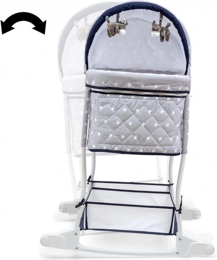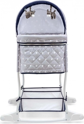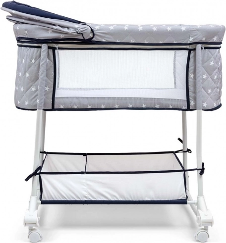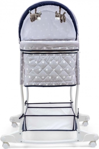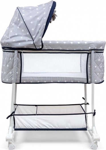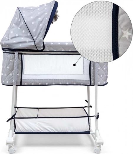 De wieg is uitgerust met wieltjes voor eenvoudige verplaatsing in huis en kan dankzij de compacte afmetingen ook gemakkelijk naar andere plekken worden meegenomen.