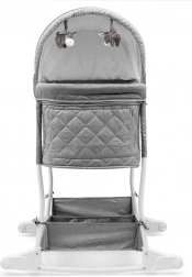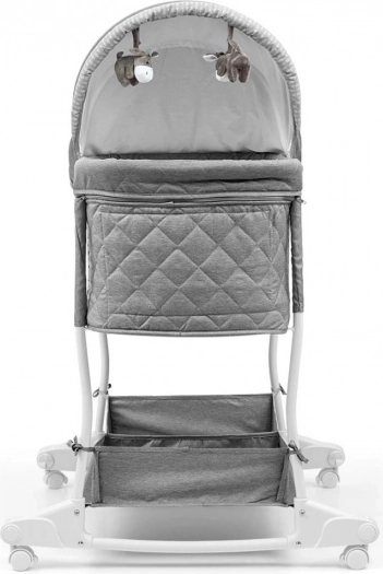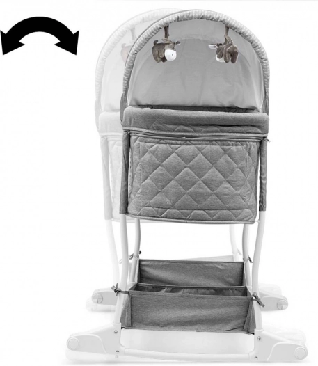 Het hemdje is uitgerust met een praktische onderste opslagmand met twee compartimenten voor de benodigdheden van het kind. De intuïtieve bediening maakt soepele overgangen tussen de functies van hemdje en bedje mogelijk. De hoezen van het kapje en het wiegje zijn verwijderbaar voor zachte was, en de zachte matras biedt maximaal slaapcomfort.