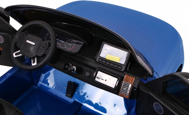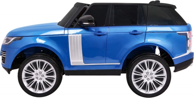 Deze gelakte blauwe RANGE ROVER HSE kinderauto is een uitstekende keuze voor broers en zussen of vriendjes – hij biedt een tweezits eco-leren zitje met veiligheidsgordels, te openen deuren met vergrendeling en een voorste motorkap met opbergvak voor kleine spullen. Grote EVA-wielen (Ø 30 × 11 cm) en volledige vering samen met een bodemvrijheid van 14 cm kunnen ook ruwer terrein aan en zorgen voor een comfortabele rit.