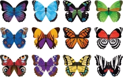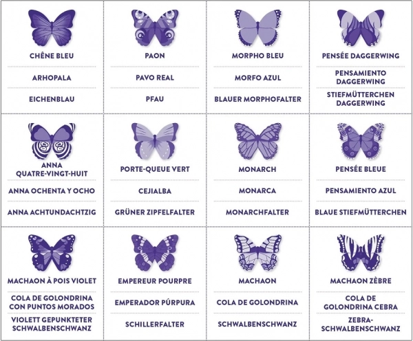 - 24 gevormde kaartjes met kleurrijke vlinders voor betere oriëntatie en herkenning.