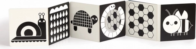 Het boek kan open neergezet worden en blijft rechtop staan, ideaal voor buiktijd (tummy time).