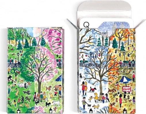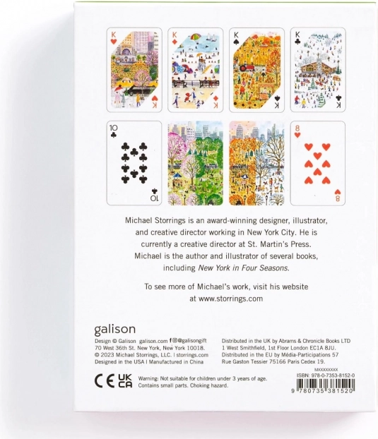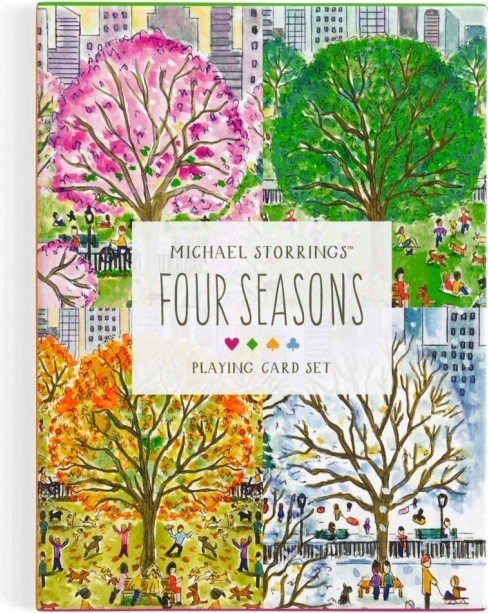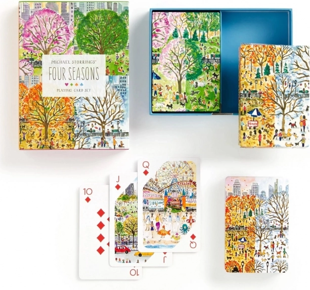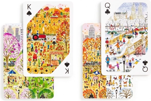 Deze designset brengt een unieke sfeer naar je spelavonden. Elk deck is versierd met originele illustraties van stadsgezichten en landschappen geïnspireerd door lente, zomer, herfst en winter. Twee complete decks zijn opgeborgen in een stevige ladeschenkdoos met magnetische sluiting voor gemakkelijk en veilig opbergen.