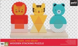 Duik in de wereld van eindeloze fantasie met de Petit Collage houten puzzel! Deze unieke puzzel, met drie charmante dieren - een leeuw, tijger en beer - is ontworpen om de ontwikkeling van uw kind te bevorderen in een speelse en educatieve omgeving.