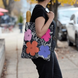 De canvas tas Warhol Bloemen combineert kunst en praktische ecologie. Ideaal voor jouw dagelijkse behoeften, van boodschappen tot boeken. Dankzij de ruimtelijkheid en het duurzame canvas, kun je het zonder zorgen gebruiken.