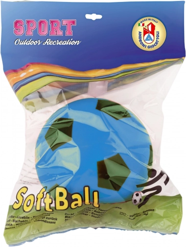 Lichte en veilige zachte foam bal met een diameter van 19,4 cm, ideaal om binnen en buiten mee te spelen. Dankzij de zachte uitvoering is hij vriendelijk voor meubels en kinderhanden, ligt hij makkelijk in de hand en is hij perfect voor de eerste worpen en trappen. Gemaakt in Italië, verpakt in een transparant zakje. Geschikt vanaf 3 jaar.