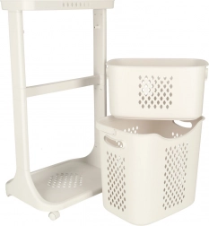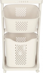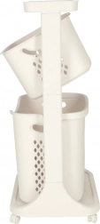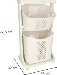 Een elegante en functionele oplossing voor de dagelijkse organisatie van het huishouden. Twee ruime manden maken comfortabel sorteren van wasgoed of het opbergen van speelgoed en kleine spullen mogelijk. Het geperforeerde patroon bevordert de luchtcirculatie, zodat de inhoud langer fris blijft.