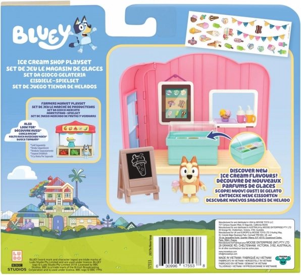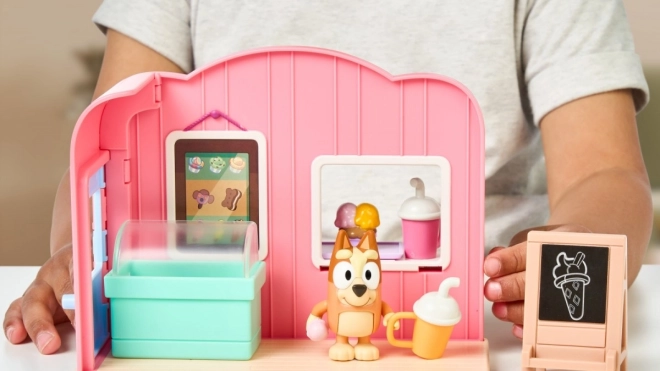 Mini IJsstand Bluey is een speelse set waarmee kinderen zich kunnen inleven in de wereld van Bluey. Deze set bevat een roze ijskraam en het figuurtje Bingo, dat als ijsverkoper fungeert. Kinderen kunnen hun eigen verhalen verzinnen dankzij het authentieke design en de details zoals de ijskraam, vriezer en andere accessoires.