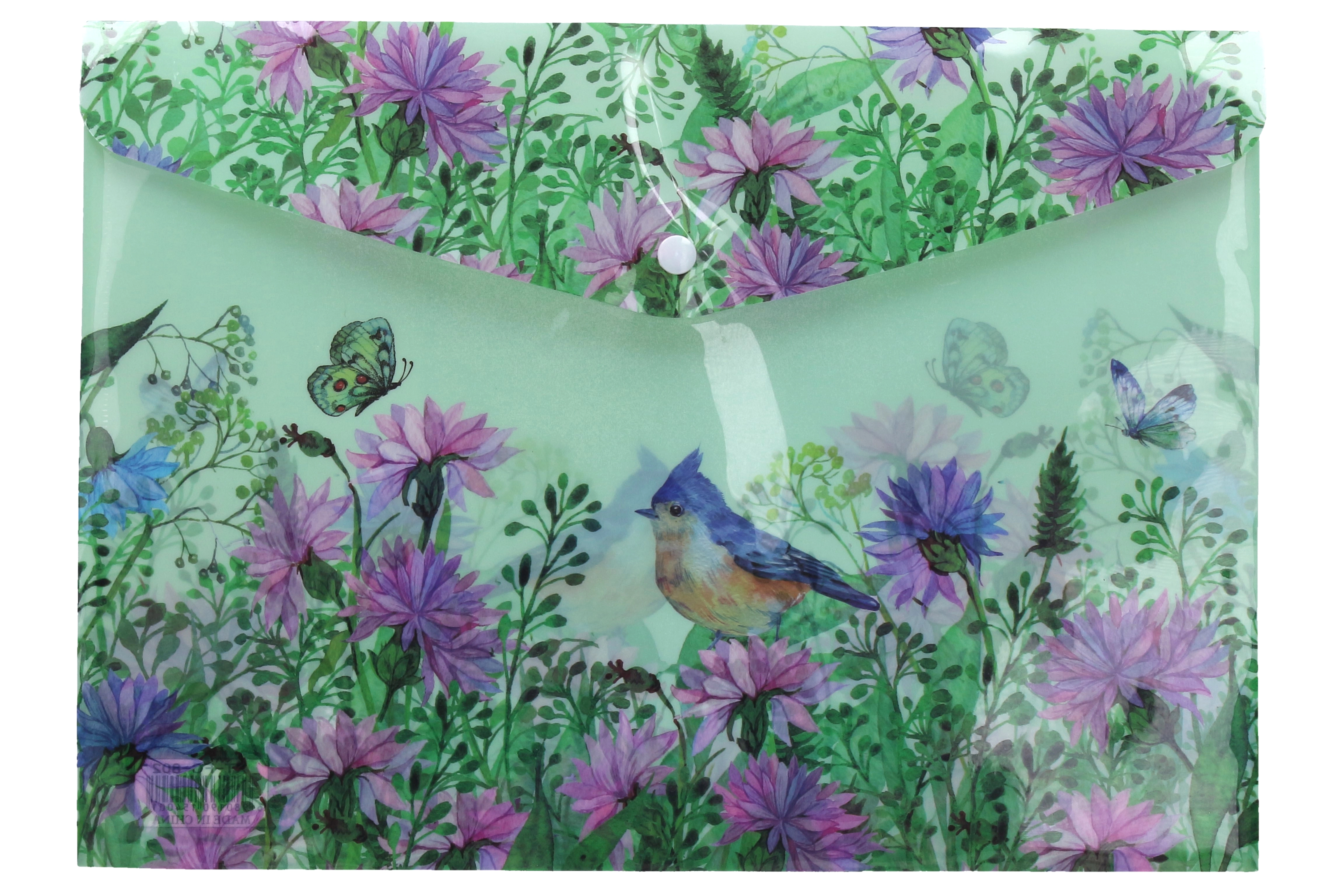 Houd je papieren geordend met de elegante map met drukknoop 35 × 25 cm. Het bloemenmotief “bloesem” geeft je documenten een frisse uitstraling, terwijl de stevige drukknoopsluiting ze veilig binnen houdt.