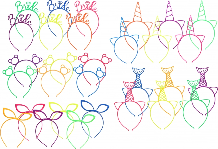 Geef je kostuum extra flair met deze veelzijdige carnavalsdiadeem in een bonte mix van kleuren. Er wachten vijf soorten versieringen op je – eenhoorn, kroontje, dierenoortjes, konijn en vis – elk verkrijgbaar in blauw, groen, oranje, geel en roze. Een geweldige keuze voor zowel kinderen als volwassenen voor feestjes, verkleedpartijen en themafeesten.