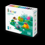 Ontdek de creatieve Hey Clay-set met het thema exotische dieren. In de verpakking vind je 15 cupjes met zachte boetseerklei en een code voor de app, die je stap voor stap begeleidt bij het maken van 6 figuurtjes. Heldere kleuren, makkelijk te vormen en luchtdrogend in 24 uur maken deze set perfect voor zowel plezier als de ontwikkeling van fijne motoriek en verbeeldingskracht.
