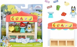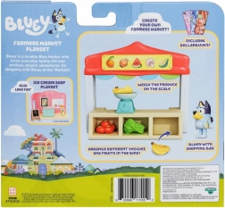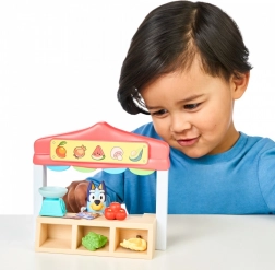Breng de sfeer van boerenmarkten in huis en laat kinderen de wereld van BLUEY betreden. Deze kleurrijke set met marktkraam, weegschaal, vakjes voor fruit en groenten en een figuurtje verandert elke dag in een verhaal vol spelenderwijs leren.