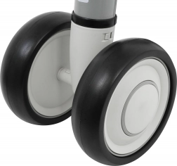 Grote foamwielen dempen oneffenheden, krassen de vloer niet en zijn stil – ideaal voor in huis en op de binnenplaats.