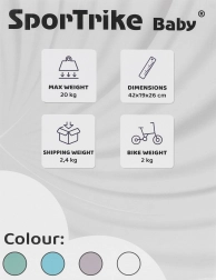 De SporTrike PettyTrike loopfiets is de ideale eerste “fiets” voor kinderen van ongeveer 1 tot 3 jaar. Dankzij de vier wielen en het lage frame biedt hij uitstekende stabiliteit, zodat kinderen zich kunnen richten op het ontwikkelen van balans en motoriek zonder angst om te vallen. De lichte constructie maakt besturen en dragen voor ouders eenvoudig.