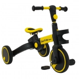 Universeel 3-in-1 kinder voertuig dat meegroeit met het kind van 1 tot 5,5 jaar. Te gebruiken als driewieler met schokabsorptie, loopfiets en duwvoertuig met duwstang. Biedt rubberen wielen met profiel, afneembare pedalen, vrijloopmechanisme, verstelbare duwstang en een comfortabel zadel met foam. Maximale draagkracht 25 kg en gewicht slechts 4 kg voor eenvoudige hantering.