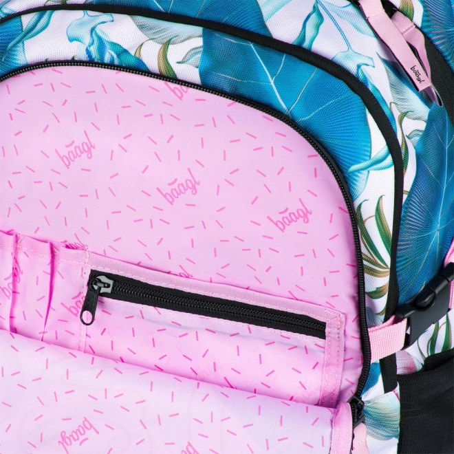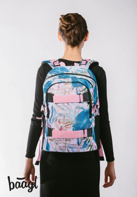 De BAAGL schoolrugzak Skate Leafs combineert stijl met functionaliteit. Ergonomisch gevormde rug en volledig verstelbare schouder-, borst- en zijcompressieriemen zorgen voor comfortabel dragen en een perfecte pasvorm. Het duurzame waterbestendige materiaal beschermt de inhoud en reflecterende elementen vergroten de zichtbaarheid bij weinig licht.