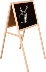 Een zwart krijtvlak om te tekenen en een magnetisch, droog uitwisbaar wit vlak voor schrijven met stift en werken met magneten – ideaal voor de ontwikkeling van de fijne motoriek, schrijven en creativiteit.
