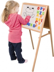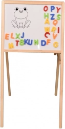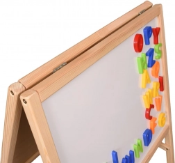 Het frame van duurzaam hout zorgt voor stabiliteit en een lange levensduur; bovendien is het bord inklapbaar, zodat je het na het spelen gemakkelijk kunt opbergen. In de verpakking vind je alles voor direct gebruik: 26 magnetische letters, 3 krijtjes, een spons en een droog uitwisbare stift.