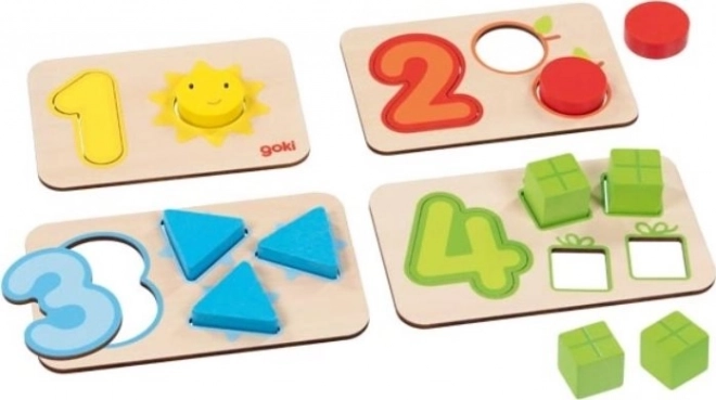 Ontdek de wereld van cijfers en vormen met de hoogwaardige houten inlegpuzzel van GOKI. Ideaal als eerste hulpmiddel voor jonge kinderen, ter ondersteuning van tellen, vormherkenning en de ontwikkeling van de fijne motoriek. De kleurrijke stukjes en het overzichtelijke houten bord maken spelen en leren eenvoudig en zorgen ervoor dat de afzonderlijke onderdelen stevig op hun plaats blijven.