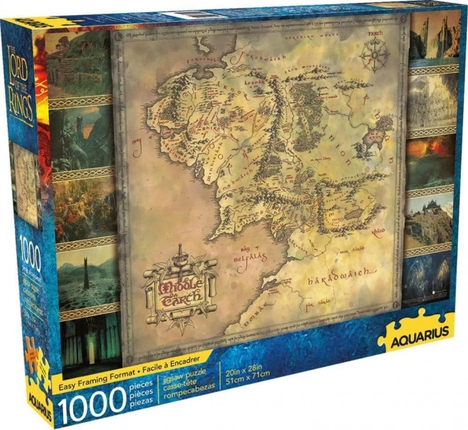 Puzzel In de ban van de ring met kaart van Midden-aarde, 1000 stukjes. Afmeting na het leggen ca. 71 × 51 cm. Ideaal cadeau voor fans en een geweldige decoratie.
